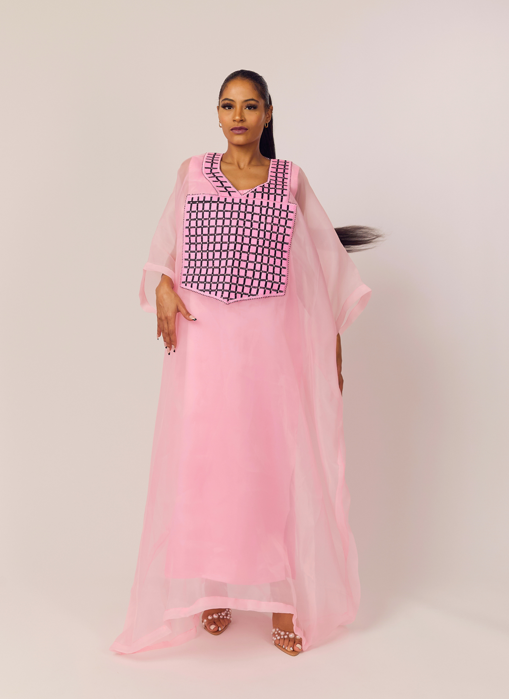 The Hasanna Boubou with matching scarf is a stunning expression of royal simplicity — crafted from lightweight sheer organza and adorned with bold front-panel embroidery that commands attention without saying a word.