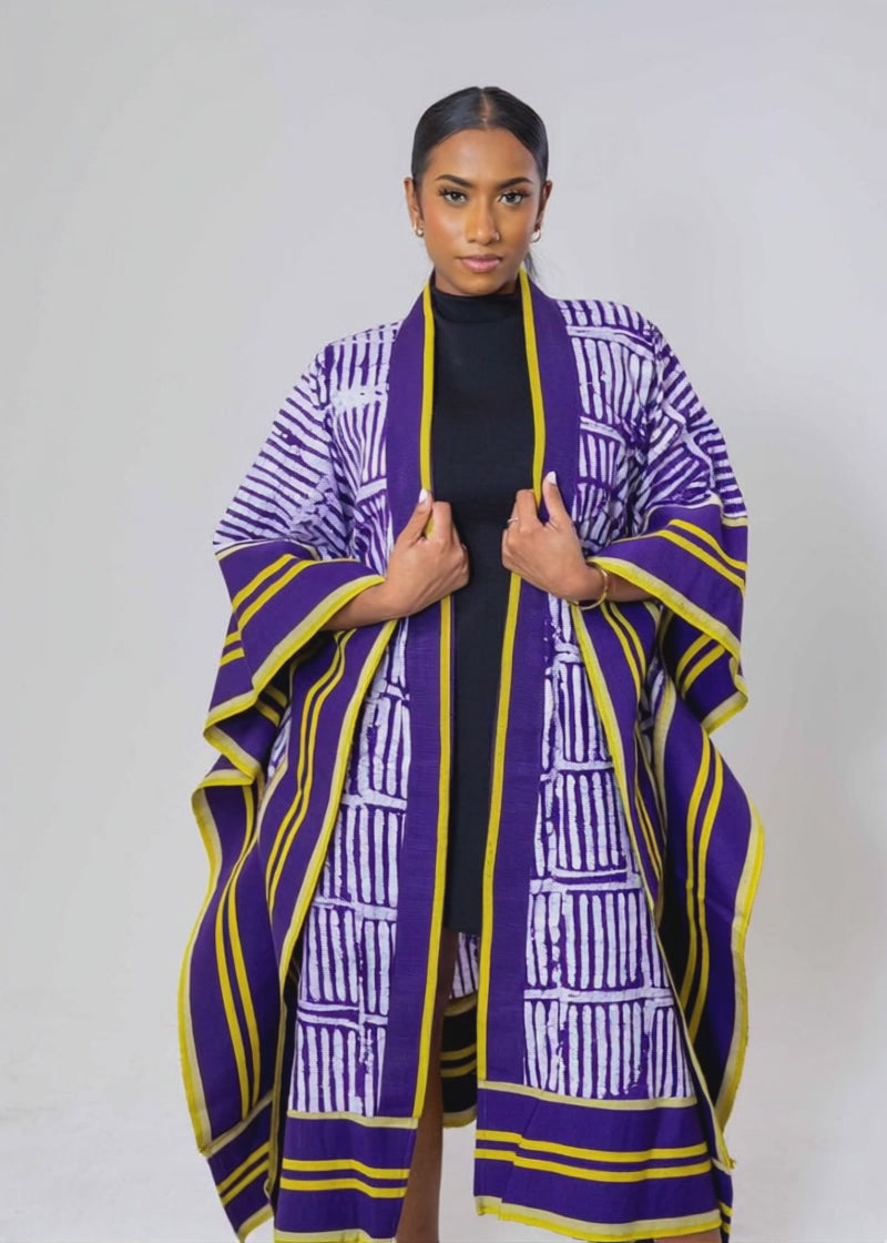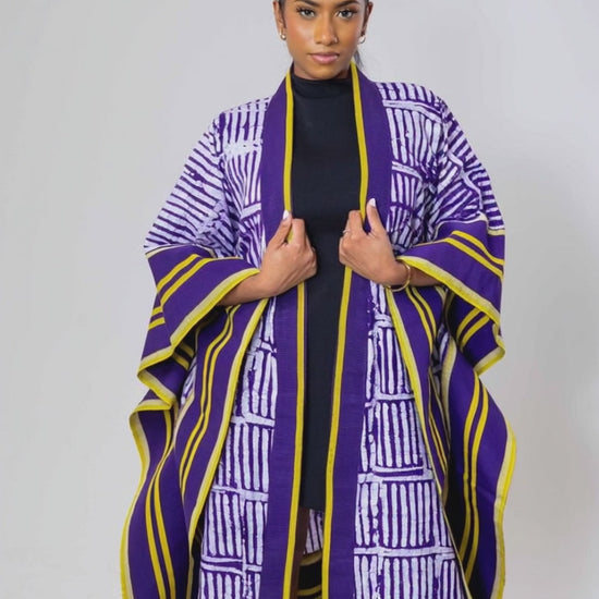 Experience the perfect blend of style and comfort with the Nwanne Kimono. Its unique design and premium fabrics make it a standout piece for any occasion.