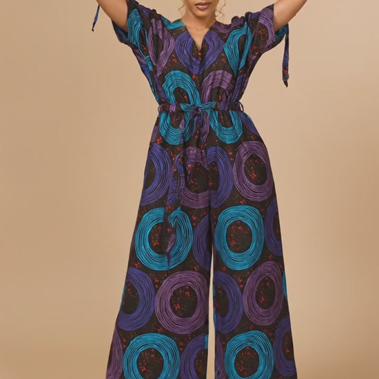 Our exclusive 'Verdant Swirl' Ankara print anchors the jumpsuit with rich forest green, mustard gold, and clay tones. The premium wax-print cotton ensures vibrant color and a crisp hand that reads luxurious on camera and in person.